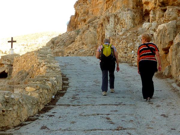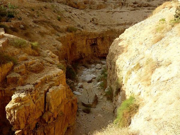 On sait que l’on n’est plus très loin de Jéricho lorsque l’on aperçoit le monastère Saint-Georges de Choziba, érigé sur un des versants du wadi. Fondé à la fin du Vè siècle, ce monastère permettait aux ermites vivant dans les grottes environnantes de célébrer les fêtes en commun et de partager leurs repas. Selon la légende, le prophète Élie se serait déjà reposé dans une de ces grottes en se rendant dans le Sinaï, alors qu’une seconde grotte aurait été le lieu où Joachim aurait apprit d’un ange que sa femme stérile, Anne, serait bientôt enceinte de la Vierge Marie. Au VIIè siècle, le monastère a été lourdement endommagé par les Perses et les crânes de quatorze moines martyrs y sont encore conservés.