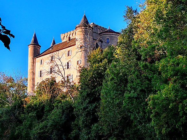 trouve au bord de la rivière l'Alagnon qui va m'accompagner toute la matinée. Le ciel est bleu, au loin je vois un château éclairé par le soleil qui se reflète dans la rivière et je prends une petite route le long de cette rivière. C'est un matin enchanteur, un matin où l'on se sent bien, où l'on a envie de communier avec la nature, de chanter et de danser... Pour moi, ce sera plutôt des incantations poétiques...