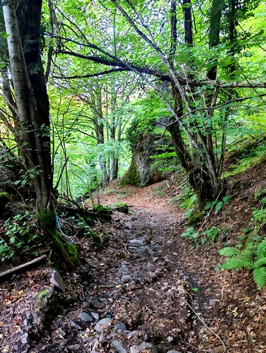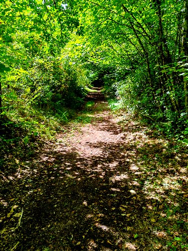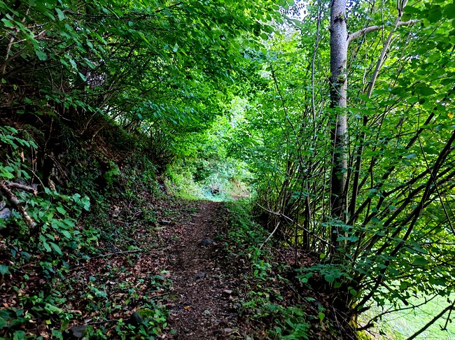 J'arrive sur une petite route que je vais suivre un moment qui descend tranquillement au milieu d'une forêt.