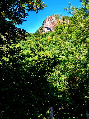 petite route qui devient vite un chemin empierré avec des grosses pierres glissantes qui m'amène au bord de la rivière
