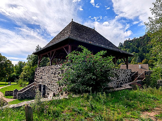 J'entre dans Vic-sur-Cère en suivant une piste piétonnière le long d'un ruisseau qui se jette plus loin dans la Cère.