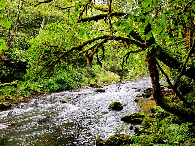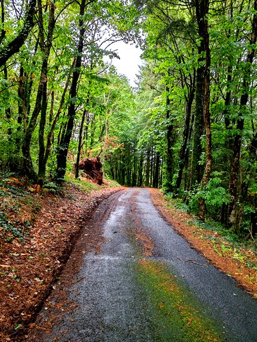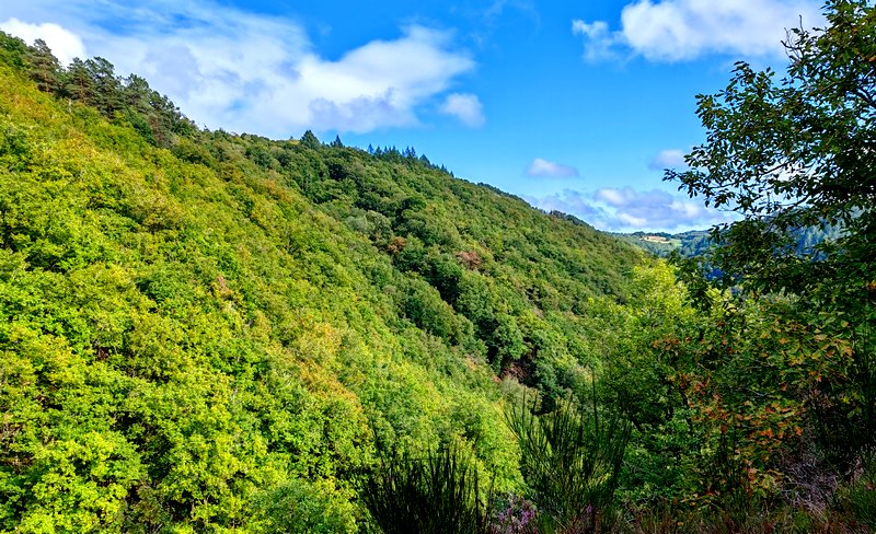 pendant près de 10 km, sentier qui passe au milieu d'une forêt, laquelle