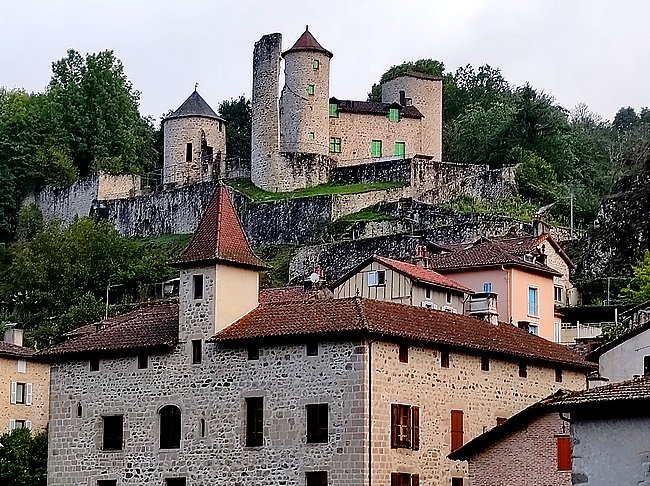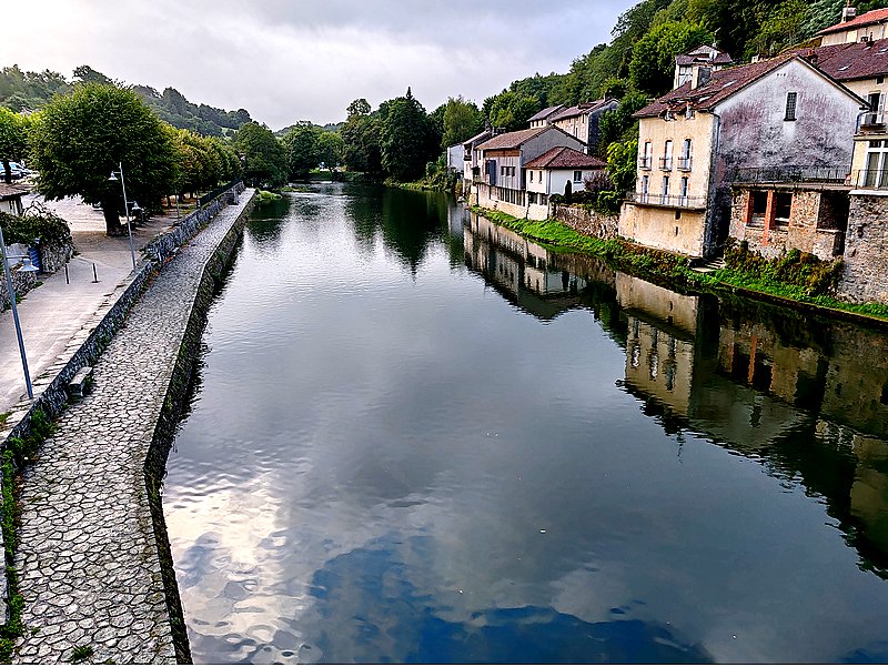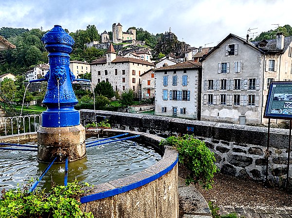 En effet, il a plu une partie de la nuit et il continue de pleuvoir quand je mets le nez dehors. Je me faisais une joie de parcourir cette étape le long des gorges de la Cère et avec cette pluie, je me demande si ce sera possible. Je quitte le studio à 7h30 et je descends au centre de Laroquebrou.