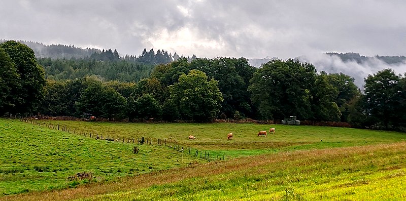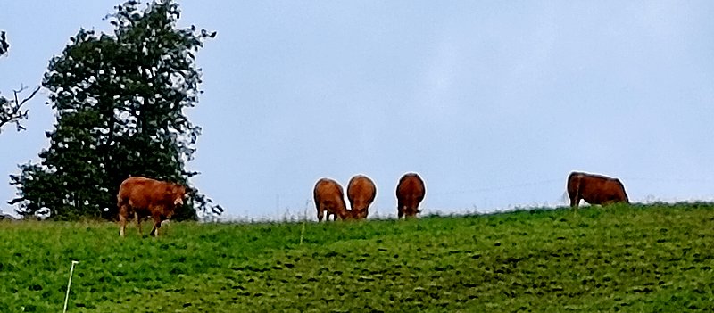 J'ai peu dormi et ce matin je devais attendre 9h pour régler le montant de mon mini-chalet à la réception du camping. Aujourd'hui, petite étape campagnarde assez courte ce qui m'a permis de récupérer de l'étape d'hier. Joli parcours, moitié routes, moitié chemins, au milieu de belles prairies et de forêts. Hier, j'ai fait une incursion dans le département de la Corrèze et aujourd'hui j'arrive dans le Lot.