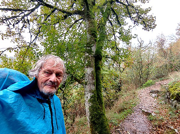 forêt de chênes et de hêtres. Je rencontre un jogger qui s'entraîne en vue d'un