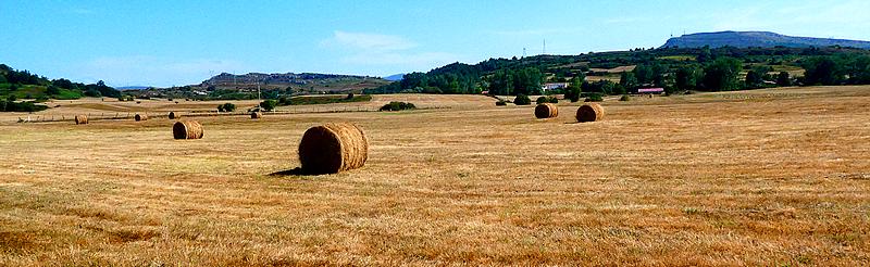 maintenant de grandes étendues de champs moissonnés. Au lieu de suivre l'itinéraire qui fait un détour par la localité de Virtus, je coupe en suivant une petite route pour arriver au prochain pueblo, Cilleruelo de Bezana où je trouve encore un bar ouvert et je fais une nouvelle pause en buvant un Coca.