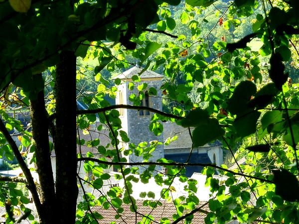 Je passe le pont pour visiter l'église avec son porche et de belles fresques du 15ème siècle.