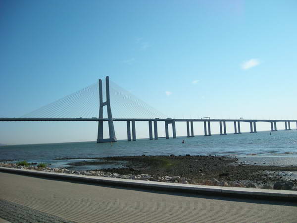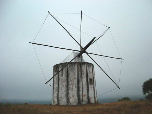 Je commence le Chemin dans la brume le long de petits rios bordés de roseaux. Après la pluie tombée cette nuit, il y a une certaine fraîcheur. Le Chemin passe ensuite au milieu de champs de tomates qui s'étendent à perte de vue. Je manque une bifurcation et me retrouve en plein champ. La boue colle à mes souliers et je dois traverser une zone d'herbes hautes chargées de pluie pour rejoindre une petite route goudronnée qui me conduit au village de Reguengo où j'arrive trempé. Il y a une aire avec des bancs, de l'eau et des WC. Je fais sécher mes chaussures et change de chaussettes avant de continuer en marchant sur une digue qui protège les villages des crues du Tage tout proche. Il commence à faire chaud, le Chemin serpente au milieu des vignes et des champs de tomates. Il n'y a pas d'ombre. Je mange des tomates, du raisin et des figues. La chaleur s'accentue au fil des km, je bois de l'eau presque chaude, le chemin paraît interminable... Un peu plus loin, je renouvelle ma provision d'eau, je m'asperge pour tenir le coup sous la chaleur, il doit faire autour de 45° au soleil, je mange encore du raisin ce qui me donne la force de continuer, je suis quand même à la limite de l'épuisement... Enfin j'aperçois au loin sur la hauteur la ville de Santarém et le pont qui enjambe le Tage. Cela me donne du courage, je n'ai plus d'eau, heureusement j'arrive à une maison qui abrite une Société de Chasse où l'on me donne de l'eau fraîche ! C'est une bénédiction ! Il me reste la montée vers Santarém qui est assez épuisante en fin d'étape ! Je vais à la Casa de Misericordia qui n'accueille pas le dimanche (Bureaux fermés), alors je vais à nouveau chez les Bombeiros où je rencontre un pèlerin espagnol qui vient du sud du Portugal en bicyclette. Nous dînons ensemble après avoir fait une promenade autour des murailles qui dominent la ville d'où l'on a un magnifique panorama sur le Tage, et admiré la Porta do Sol. Chez les Bombeiros de Santarém, il n'y a pas de matelas au sol, seulement une épaisseur de couvertures et mon tapis de sol. Comme hier on a l'impression plus d'être toléré qu'accueilli, mais on ne s'en plaindra pas !! (1 coquille)