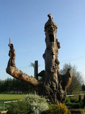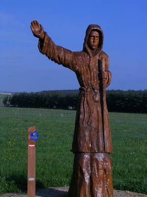 A la sortie de Saugues, ce pèlerin nous souhaite Bon Chemin ! Au bord du Chemin, cette sculpture originale... Les vaches regardent passer les pèlerins... |