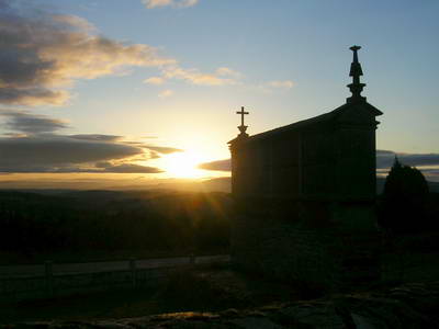 Je prends quelques moments de louange et de prière. Je me sens bien dans ma peau de pèlerin. J'ai le sentiment que je ne trouverai rien de plus à Santiago, seulement la joie d'être arrivé, d'avoir accompli totalement ce Chemin. La vraie richesse du pèlerinage de Compostelle, elle nous est donnée jour après jour, dans tous ces moments exceptionnels vécus sur le Chemin, dans cette jouissance que procure ce sentiment d'une liberté jamais vécue aussi intensément, dans la contemplation de la beauté des paysages, dans toutes ces églises, chapelles, sanctuaires etc... qui jalonnent le Chemin et qui procurent tant de bonheur ! Et cette richesse nous est encore donnée en abondance dans toutes les rencontres que l'on peut faire.... L'arrivée à Santiago, c'est simplement l'aboutissement, le couronnement. Je ne trouverai au terme du pèlerinage rien de plus que ce que j'aurais vécu tout le long du Chemin, jour après jour.