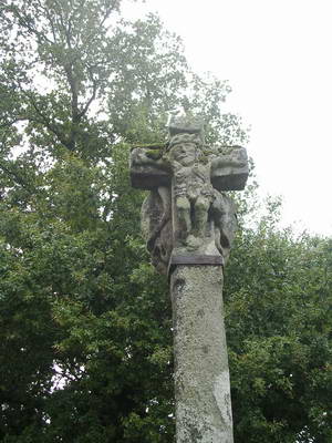 A l'entrée de Ligonde, devant un chêne magnifique, se dresse un calvaire sculpté, |