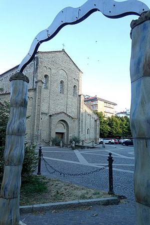 Bevagna, il voit tout d’un coup une multitude d’oiseaux, dans les champs, sur
