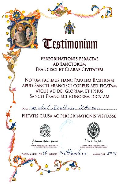 Ainsi devant le tombeau de François d'Assise je t'ai confié au Poverello pour qu'il te revête d'un manteau de Lumière et t'accompagne dans ton élévation vers les sphères célestes...