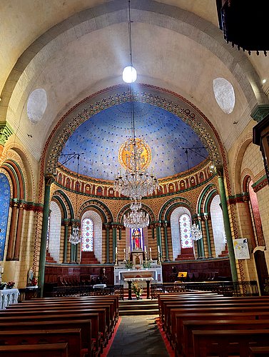 J'arrive au grand rond-point à l'entrée de Massiac et je me dirige vers l'église et le presbytère où je suis accueilli par le curé de la paroisse le Père Thomas Raffalak, un prêtre polonais qui a officié en Russie, dans la région parisienne et maintenant à Massiac. C'est un grand sportif qui court les marathons. C'est là aussi une belle rencontre.