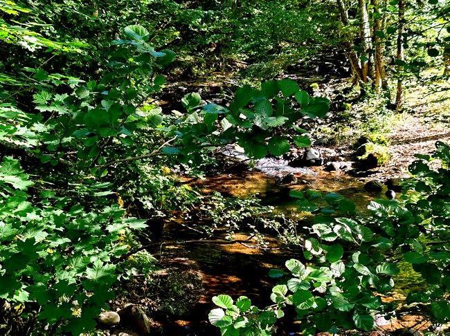 J'arrive sur une petite route que je vais suivre un moment qui descend tranquillement au milieu d'une forêt.