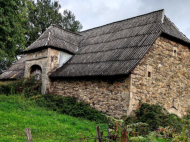 Le temps était plutôt beau ce matin, mais au fil des heures le ciel s'est couvert, mais je n'ai pas eu de pluie. J'ai mon hébergement à Cahus au-dessus de Laval-de-Cère, mais comme il est tôt, je décide de descendre vers cette localité pour manger qqch, car depuis hier matin je n'ai mangé que quelques biscuits et 2 barres de céréales. Mais à part un bar où je bois un Coca, rien ! Même la supérette est fermée ! Cette commune rurale n'a aucun intérêt. Je l'imaginais vivante et animée, mais c'est l'inverse et j'ai vu plusieurs commerces fermés et à vendre... Même l'église en béton n'est pas belle. (Ce qui explique que je n'ai pris qu'une photo de cette localité).
