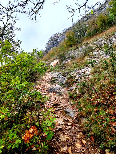 Loubressac. Ce sentier par temps de pluie est un peu délicat car les rochers