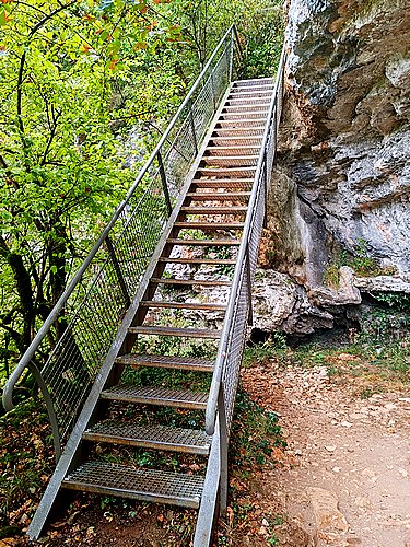 sont glissants. Vers le haut il y a des escaliers métalliques et aussi