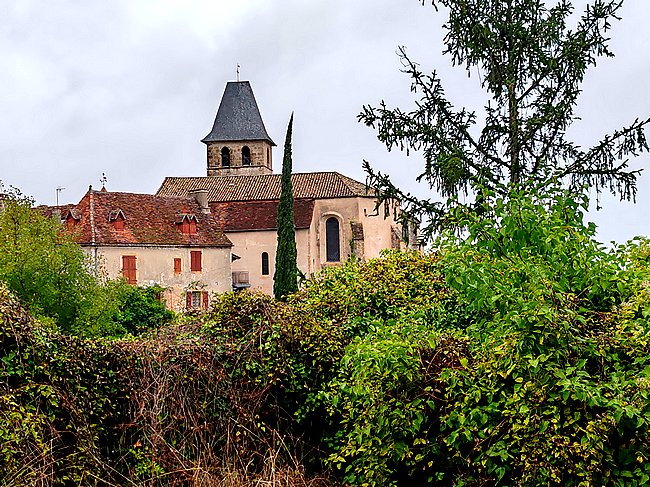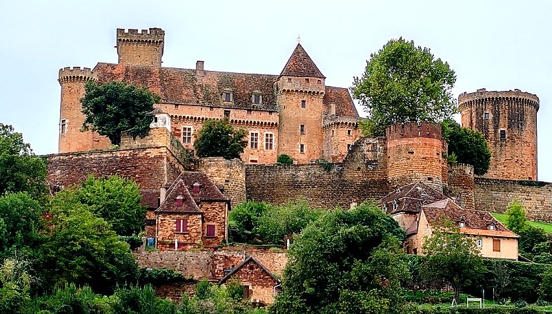 j'arrive face au Château de Castelnau, le village du même nom et la Collégiale