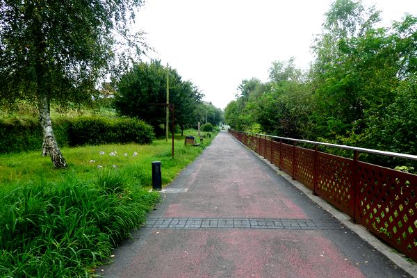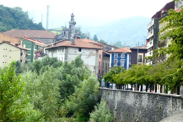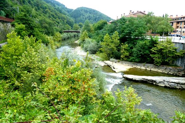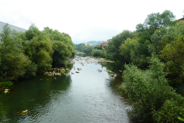 Le reste de l'itinéraire offre peu d'intérêt. C'est un long cheminement entre rio Oria et voie ferrée le long de zones commerciales ou industrielles. Cependant la voie piétonnière est pourvue de bancs et de points d'eau et la marche ne présente pas de difficultés. Je traverse encore 2 pueblos Villabona et Anoeta toujours avec le même genre de parcours. C'est une région très industrialisée et assez riche de par les emplois qu'elle suscite. C'est pour moi une découverte, m'attendant plutôt à ne traverser que des zones de cultures et de pâturages.