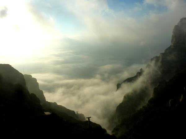 Une belle matinée s'annonce avec les montagnes de Montserrat dans le brouillard !