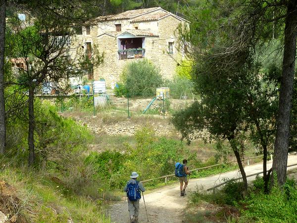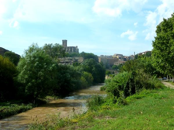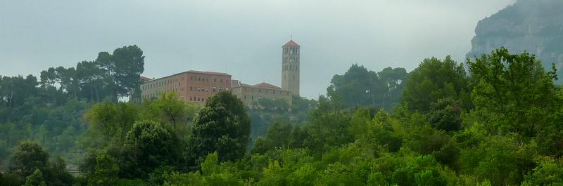 On quitte Monsterrat à 8 h par un petit chemin qui surplombe la route un moment avant de descendre vers le monastère Sant Benet où on fait une première pause en échangeant quelques mots avec une sœur bénédictine. Un peu plus loin, on se trompe de chemin et après un assez long détour en suivant une route assez circulante, on arrive à Saint-Vincent de Castellet où on s'arrête pour déjeuner. Il fait chaud et les chemins sont assez fatiguants, sans beau paysage alentour, avec seulement derrière nous la chaîne des montagnes de Montserrat. On arrive épuisés à l'entrée de Manresa, où heureusement une fontaine nous offre un rafraîchissement bienvenu ! Avant d'aller à l'hébergement, nous nous arrêtons sur une petite place boire une bière et prendre le temps de nous reposer... On cherche un moment notre Pension où j'ai un petite chambre peu agréable, mais cette solitude me fait du bien ! Je découvre deux ampoules au pied gauche (Je m'en doutais un peu au cours des derniers kilomètres...) Bon, j'ai ce qu'il faut pour me soigner, mais cela va ajouter au handicap de mon pied droit qui est encore douloureux (suite à une fracture du 5ème métatarsien survenue à la fin du mois de juin). On descend dans le quartier moderne de la ville pour trouver un restaurant où on finira la soirée autour d'un repas qui ne nous laissera pas un souvenir impérissable !