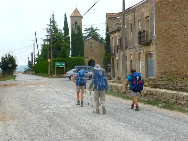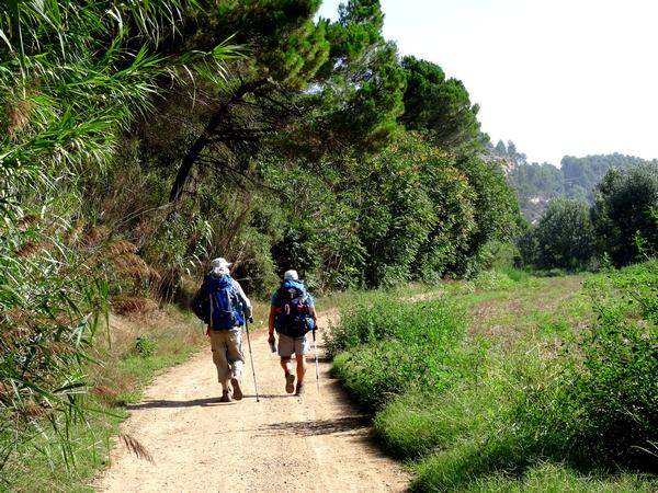 A la sortie de Manresa, nous galérons un moment avant de trouver le chemin... On arrive alors au sanctuaire de la Salut près du village de Viladordis. On prend un moment de repos et d'échange avec le prêtre qui est responsable de ce lieu. Puis on reprend le chemin qui va longer un moment le rio Llobregat. C'est un parcours sauvage avec quelques passages ombragés, ce qui est bien apprécié car la chaleur est au rendez-vous ! J'ai laissé mes compagnons prendre de l'avance et je prends le temps dès que je trouve une fontaine pour me rafraîchir et reposer les pieds ! Je les retrouve à l'entrée de Navarcles au Bar-restaurant où l'on se désaltère et se restaure...