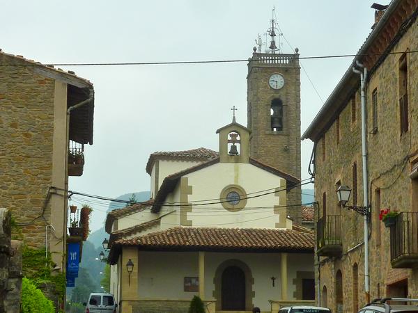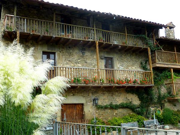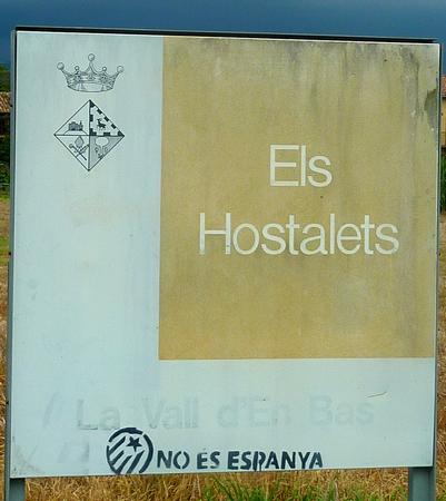 Els Hostalets d’en Bas est l’un des villages les plus pittoresques du chemin et mérite donc une halte. Son origine est liée à une auberge située sur la grand-route d’Olot à Vic. C’est aujourd’hui un village où agriculture et tourisme s’associent comme nulle part ailleurs. Dans le Carrer de Teixeda, la rue la plus intéressante du village, toutes les maisons sont dotées de balcons en bois ornés de jardinières d’où débordent géraniums et autres fleurs. À certaines périodes de l’année, les habitants y laissent aussi pendre des épis de maïs, pour les faire sécher au soleil. L’effet visuel de ce tableau est alors saisissant. On irait jusqu’à croire que cette mise en scène est spécialement conçue pour offrir au touriste le cliché rêvé. Le Carrer de Vic, perpendiculaire au Carrer de Teixeda, est, lui, authentique et rustique mais sans excès chromatiques. Au-dessus des maisons, ce sont les falaises de Falgars, sur lesquelles est perché l’ermitage Sant Miquel de Falgars, qui captent le regard. Un sentier permet de s’en rapprocher depuis le village, mais la distance et la difficulté du parcours, qui ne décourageront pas le randonneur en excursion, dissuaderont le pèlerin. Soulignons que la vue depuis le sommet est absolument imprenable. Jusqu’à Cantonigròs, on longe l’ancien chemin royal allant de Vic à Olot, héritage d’une voie romaine parsemée d’auberges reconverties en fermes.