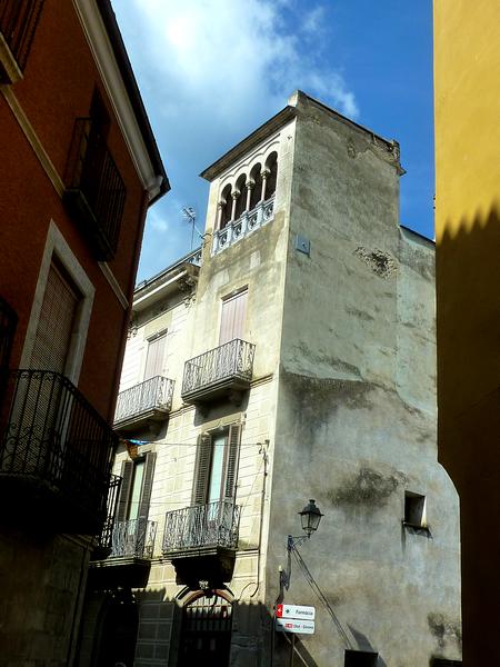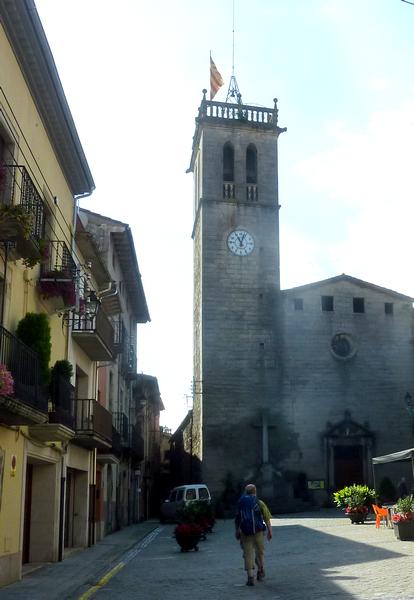 Deux places sont incontournables : celle de l’église et El Firal. La première, présidée par une église paroissiale gothique, est nichée dans un entrelacs de ruelles médiévales. Emprunter le Carrer dels Cantons Estrets permet de vérifier de quelle façon une rue peut se terminer en simple couloir, ou presque. L’autre place, dite « El Firal », accueille la mairie et la Capella del Roser (chapelle du Rosaire). C’est un lieu vaste et très fréquenté par les habitants du lieu, qui ont coutume d’y refaire le monde. De là, en direction du sud-ouest, on aperçoit le sanctuaire de la Mare de Déu de la Font de la Salut, bâtisse blanche qui se distingue nettement sur le fond vert que compose la montagne. C’est un sanctuaire très visité par les habitants des cantons de la Garrotxa, de la Selva, de l’Osona et du Gironès. Sa situation — à 1 030 m d’altitude — en fait un fantastique poste d’observation de la vallée d’Hostoles et des Pyrénées. De récents travaux de rénovation ont permis d’y aménager des chambres d’hôtes.