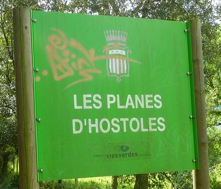 La voie verte traverse le village et la route en contournant les vieux quartiers, qui méritent pourtant un détour. Le village s’est constitué autour de l’église Sant Cristòfol. L’édifice original a dû être reconstruit après la guerre civile. En effet, après l’avoir utilisée comme poudrière, puis comme entrepôt, on la fit sauter. Non loin de l’église, la mairie est installée dans une intéressante bâtisse à grand balcon gothique. Le château d’Hostoles regarde le temps passer du sommet d’une colline, à la limite du territoire communal de Sant Feliu de Pallerols. De cet édifice du début du XIe siècle, il ne reste qu’un tas de ruines et quelques vestiges de la muraille d’enceinte qui se prolongeait sur la roche.