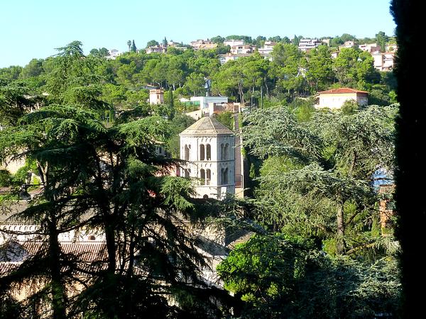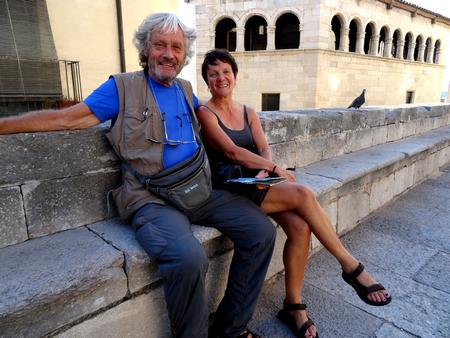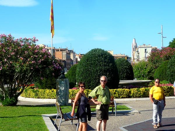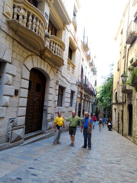 Je quitte seul l'hôtel à 8 h après un super petit-déjeuner. L'itinéraire va suivre encore jusqu'à Gérone la Via Verde qui longe à quelques dizaines de mètres la route nationale. Le seul inconvénient sur cette voie, ce sont les cyclistes nombreux à l'emprunter, qui arrivent sans prévenir et qui vous font parfois sursauter, surtout lorsque l'on est plongé dans une méditation solitaire...Après environ 10 km, j'arrive à Bescano où j'attends dans un bar Jacques, Marc et Paule. Nous repartons ensemble toujours sur cette Via Verde qui à la longue s'avère un peu monotone ! Arrivés à Salt, Jacques qui souffre d'un genou nous fait part de son souhait de prendre un bus pour arriver au centre de Gérone. Nous allons directement à l'hôtel Europa où nous posons nos sacs et après nous être changés, nous allons dans un restaurant tout proche. Après un temps de sieste, vers 16h, nous allons dans le quartier historique visiter les églises, les monuments et prenons le temps de déambuler dans les ruelles typiques de ce vieux quartier. Nous dînons dans un des restaurants qui sont nombreux dans ce quartier, et où des spécialités catalanes arrosées d'un bon Vino Tinto vont nous aider à nous remettre des émotions diverses que cette journée a engendrées !... (Un peu de regret de n'avoir pas eu plus de temps pour explorer davantage les différents quartiers de cette ville, tous ses monuments ainsi que ses riches musées....Une invitation à y revenir...)