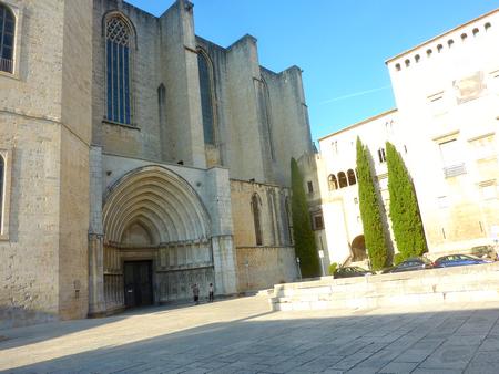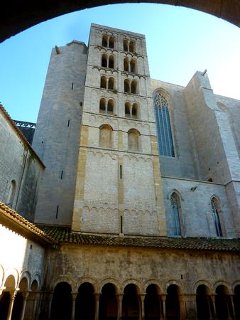 On ne sait pas exactement quand fut fondé le monastère Sant Pere de Galligants, mais divers documents attestent de son existence au Xe siècle. Les bâtiments que l’on peut voir aujourd’hui, l’église et le cloître, datent du XIIe siècle. La façade de l’église est ornée d’une grande rosace circulaire. Les galeries du cloître sont assez singulières puisque, au centre de chacune d’elles, les colonnes sont groupées par cinq. Les chapiteaux sont révélateurs d’une grande maîtrise de la construction. Deux d’entre eux sont particulièrement originaux : le premier montre un évêque disant la messe, tandis que le second représente quatre sirènes à double queue. Les dépendances de Sant Pere de Galligants abritent aujourd’hui le musée archéologique de Gérone.
