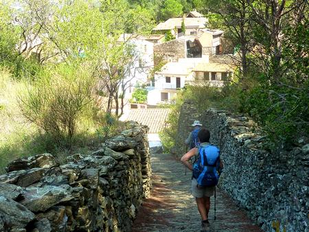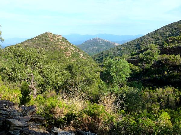 Après les villages de Vilajuïga et Pau le chemin grimpe assez raide (Dénivelé de 600 m) offrant une belle vue sur la vallée