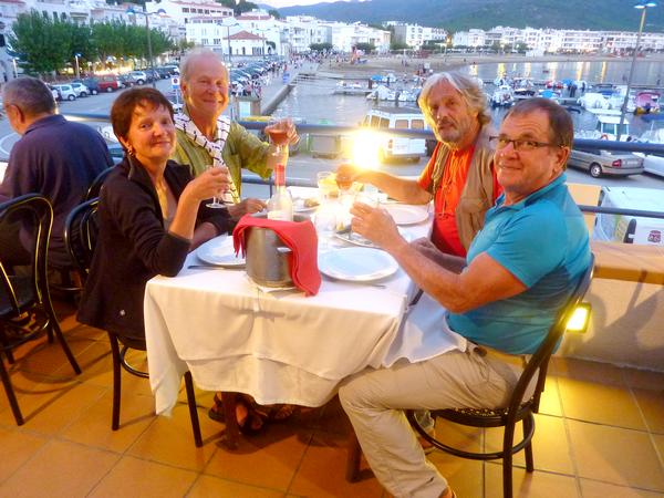 Le soir, on se met d'accord sur le choix d'un restaurant et heureux de se retouver tous les quatre, on fête la fin de notre Chemin Catalan autour d'un bon dîner accompagné d'un bon vin de pays !