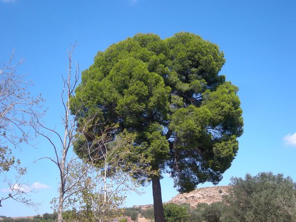 Au pied de ce beau pin, je fais une pause pour casser quelques amandes