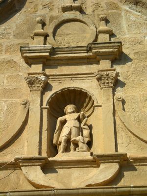 Je découvre au fronton de cette chapelle une statue de Saint Roch