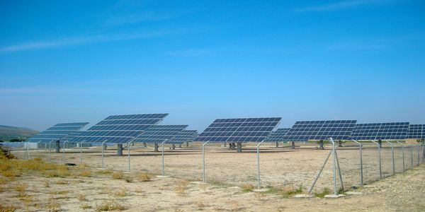 Un grand parc de capteurs solaires photovoltaïques juste avant d'arriver à Alcanadre.