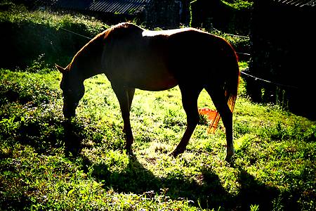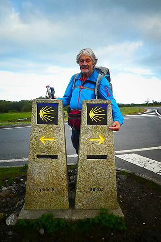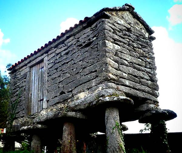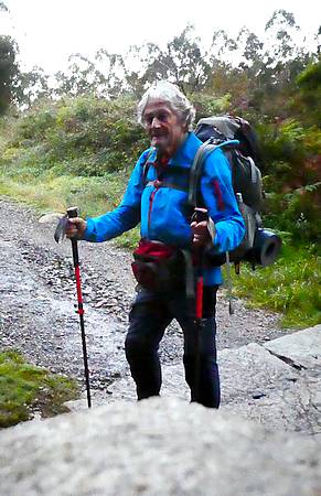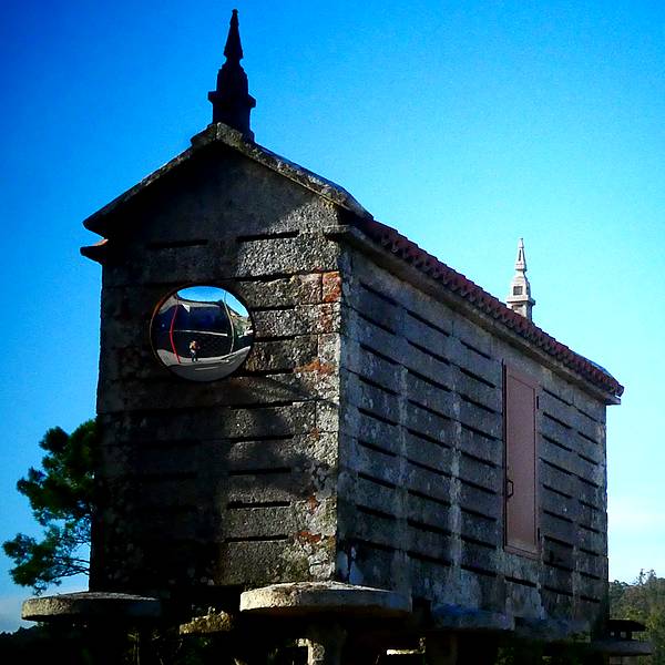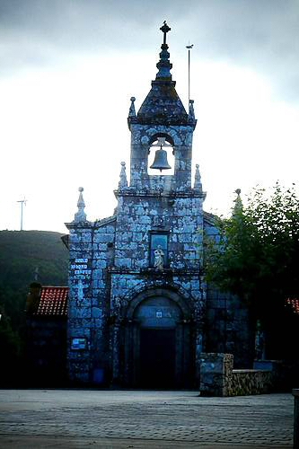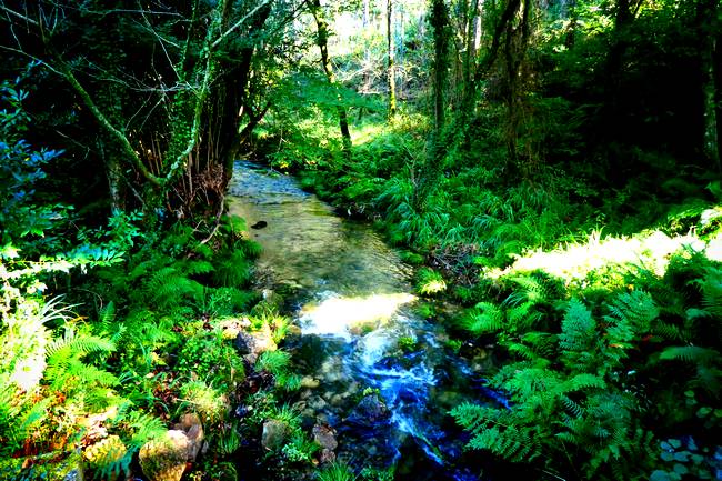 Ensuite je prends une piste en assez forte descente qui rejoint la route et après 200 m je vais prendre une piste forestière qui descend assez raide au milieu d'un bois de chênes et ensuite, elle rejoint une petite route. Plus loin, j'emprunte un joli chemin bordé de murets qui atterrit sur une large piste qui traverse un bois composé d'une végétation assez variée. J'arrive sur une route, il y a à droite un stade où j'entends des enfants jouer, il y a des bâtiments modernes et j'entre dans Dumbría dont j'aperçois sur la hauteur le clocher de l'église. Je traverse cette localité qui est plutôt jolie avec ses maisons repeintes. Je pense que ce sont plutôt des résidences secondaires. Je m'attendais à trouver un bar, mais rien d'ouvert ! Je fais une pause en m'asseyant sur un banc en face du Centro de Salud. Je quitte la localité en suivant une petite route, puis un petit chemin. Je passe sur un pont qui enjambe un ruisseau, je traverse une route et j'arrive sur une piste au milieu d'un bois d'eucalyptus avec quelques pins ici ou là... Je suis cette piste au milieu d'une belle forêt pendant un long moment, jolie piste herbeuse, recouverte par moment de feuilles d'eucalyptus et bordée de murets. Cette forêt est composée de multiples essences, mais principalement ce qui a dejà été décrit plus haut, pins, eucalyptus, fougères, genêts et un peu de bruyère.... Cette piste après quelques bons dénivelés surtout en descente arrive sur une route qui mène à une petite localité. Je prends une nouvelle route goudronnée qui arrive rapidement sur un vaste espace agricole où on retrouve les champs de maïs et les prés. Un peu plus loin, j'entre dans une autre localité avec les panneaux à l'entrée indiquant Grixa et l'Albergue O Cabanel où j'ai réservé une chambre. Le temps est resté assez frais tout au long de l'étape et en arrivant il y a quelques nuages dans le ciel. |