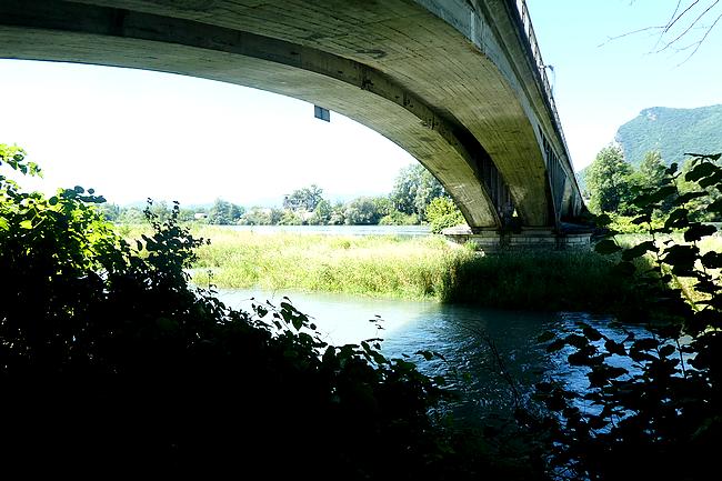 Je passe sur le Pont qui enjambe le Fier qui est une rivière-torrent des Préalpes de Haute-Savoie,