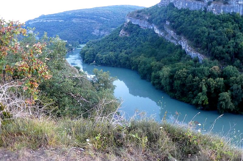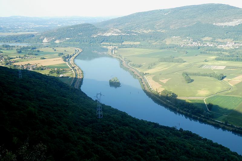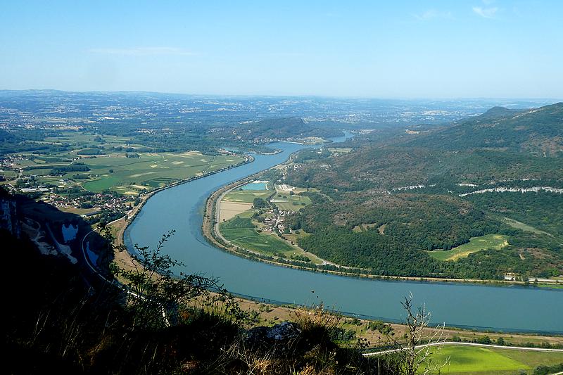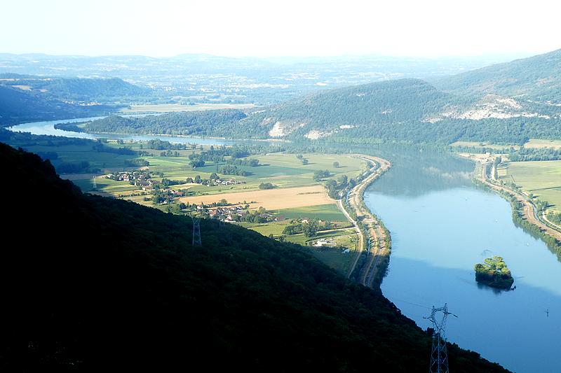 vallée où s'écoule comme un ruban d'azur le Rhône. On part de 230 m pour