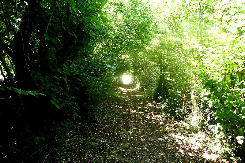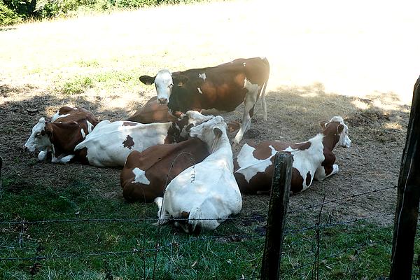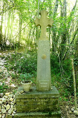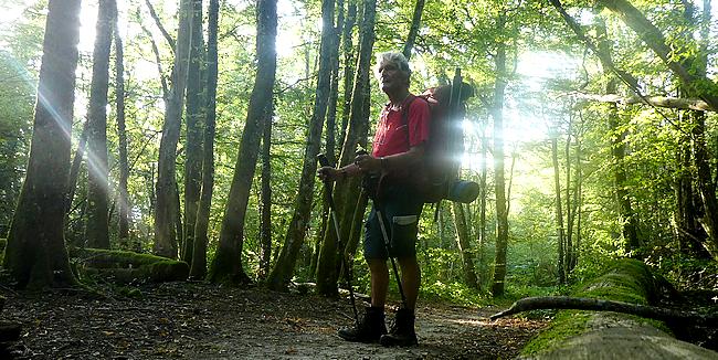 long cheminement au cœur d'une forêt assez sauvage, heureusement à l'ombre. j'arrive à la maison des chasseurs de Traize où je peux faire le plein d'eau et me reposer.