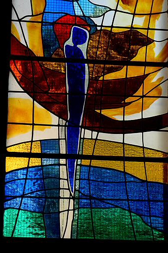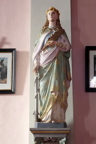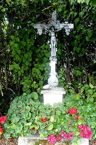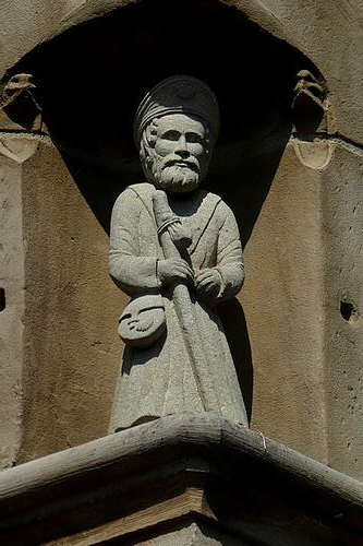 En face de l'église, il y a un bar ouvert où je vais boire un coca. Je discute un peu avec le patron avec lequel je suis pleinement en phase ! En effet, ses premiers mots sont : "Ici, on ne met pas de masque !" Enfin quelqu'un qui a du bon sens ! Je remonte ensuite dans le village pour voir une statue de Saint-Jacques dans une niche en hauteur à l'angle d'une maison.