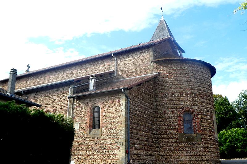 quelques parcelles de vignobles et de soja. Longues pistes qui font des détours en suivant des angles géométriques. Première difficulté de la journée, après 5 kilomètres, une bonne petite grimpée pour arriver au premier village Pommier-de-Beaurepaire. Je visite l'église qui pour une fois est ouverte.