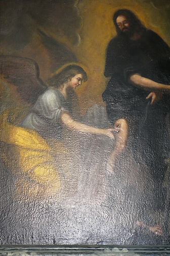 Après 12 kilomètres, j'arrive à Revel-Tourdan, beau village avec d'anciennes demeures. Je visite l'église qui là aussi est ouverte et j'ai l'heureuse surprise d' y voir une peinture représentant Saint-Roch guéri par un ange.
