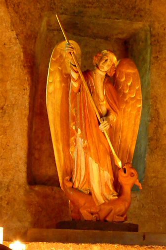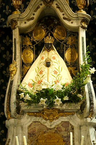 statue de Saint-Jacques et la Vierge Noire trônant au-dessus de l'autel au fond