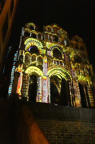 La soirée se termine au pied de la Cathédrale devant la scénographie du