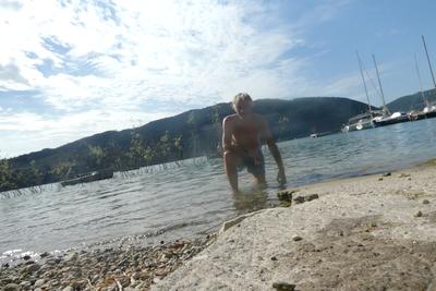Je vais nager dans un lac tout proche et le soir nous dînons ensemble avec