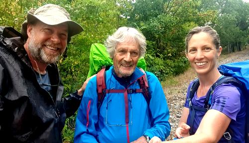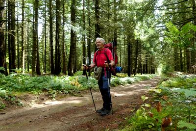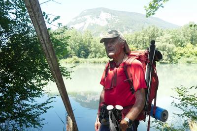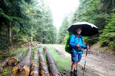 portant le nécessaire pour bivouaquer. Une Autrichienne, Bettina, marchant