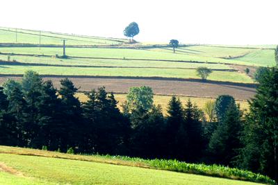 sous-bois, des fermes, des hameaux et quelques gros villages où quand je trouve