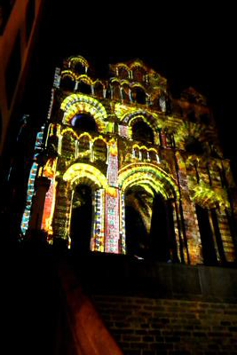 La soirée se termine au pied de la Cathédrale devant la scénographie du